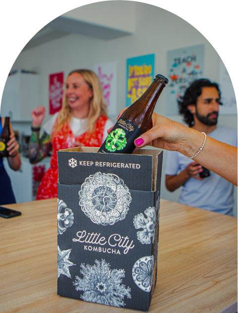 Shorten your to-do list with a hassle-free Little City Kombucha subscription and save 10% off every box. Choose from our range of flavours (we’ve got options to suit everyone) and the delivery frequency that works best for your office and we’ll deliver fresh booch straight to you, as often as you and your team need.